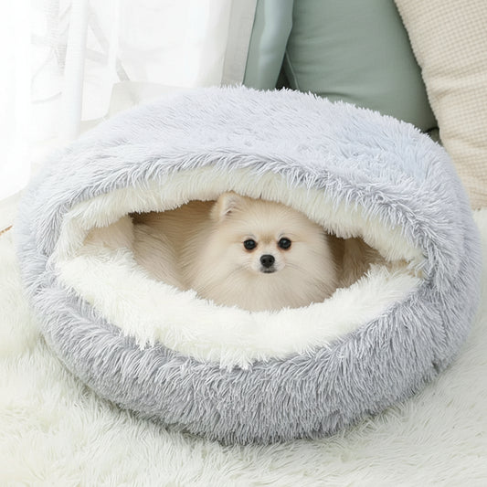 CozyCove™ Calming Pet Cave Bed with Hooded Cover – Ultra-Soft Faux Fur Donut Bed for Small Dogs & Cats, Removable Washable Design, Anti-Slip Bottom, Improves Sleep for Pets up to 11 lbs